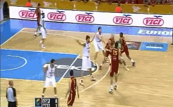 En el caso del desequilibrio entre los tiros interiores y exteriores la otra consecuencia es la ocupación del espacio. En este caso, el resultado es equivalente para cada zona de anotación. Si tu equipo abusa del juego interior buscando siempre tiros cercanos al aro, el resultado es que la defensa rival se va a centrar en cerrarse en la zona y negar los espacios dentro. Tus jugadores no encontrarán espacio en el interior y hacer que la pelota pase por ahí se convertirá en una tarea complicada. Un ejemplo de ello lo podemos encontrar en la selección de la época de Imbroda, en la que cerraban el interior y el equipo se quedaba atascado bien intentando triples precipitados o pasando el balón por la línea de tres sin pasar por dentro, perdiendo partidos con claridad y de nuevo sin pasar de cuartos, o la derrota del Tau en la Final Four del 2001. El equipo se ve obligado a tratar de vivir del triple o pelearse canastas cerca del aro en circunstancias muy desfavorables. En cambio, si el equipo abusa del triple, lo que tenemos es que la defensa rival tenderá a conceder menos espacio a los hombres exteriores y con ello la defensa quedará más abierta. Se abren espacios por dentro que podrán ser aprovechados… si uno no se empeña en seguir tirando de tres a toda costa, en cuyo caso no será tan fácil encontrar posiciones de tiro cómodas y, en cualquier caso, los porcentajes de tiro no serán tan elevados como podrían serlo de dos mediante el aprovechamiento de esos espacios. Con las más que esperables consecuencias de perder anotación y aumentar las posesiones del rival y su anotación.