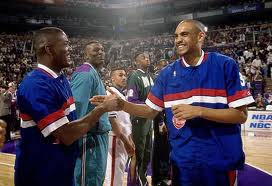 Pero volvamos por un segundo a Detroit, la ciudad en la que cumplimentó su primer gran contrato como profesional. Allí, enfundado en la camiseta blanca de los Pistons, o la verde de visitante que tan de moda se puso en nuestro país, empezó a ser considerado una especie de salvador, un continuador de esos jugadores llamados a ir retirándose poco a poco. Entre ellos, claro, Michael Jordan. Precisamente, un antiguo mentor de Michael, Doug Collins fue el encargado de asumir la dirección técnica de la franquicia a partir del segundo año de Grant en la liga. No hubo química. Cada vez que el entrenador diseñaba una jugada para el número 33, el número 33 pasaba la bola. Cada vez que le pedía agresividad en rueda de prensa éste ponía calma y mesura. Una vez comprendido el mensaje, Collins, uno de los principales valedores del “Be like Mike” comprendió que su jugador franquicia podía dominar el juego de una manera más sutil, poniéndole la bola al jugador abierto, reboteando, capitaneando los contraataques,…