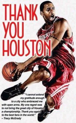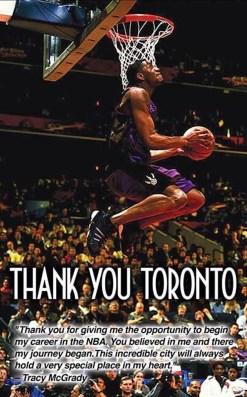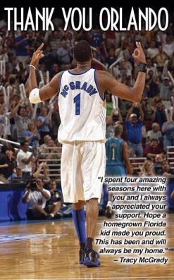Hace unos días Tracy McGrady anunciaba su retirada de forma oficial de la NBA, dejando una puerta abierta a un posible retorno a la liga china. El propio T-Mac, con tres espectaculares posters personalizados, ha querido agradecer su carrera profesional en la NBA a las franquicias en las que más impacto ha tenido con este homenaje en su cuenta de twitter: