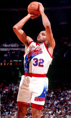 En 1991 los Sixers utilizaron esta camiseta blanca con una franja azul llena de estrellas…