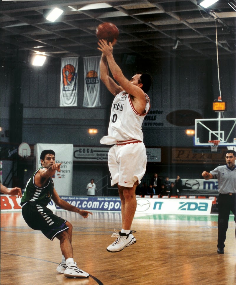 Mike.- Con lo cual se dio la circunstancia de jugar fuera, de vivir otra etapa, de ser importante, de ganar dinero y el poder conocer otro baloncesto. Siempre me ha gustado la aventura y me fui al Bayer Leverkusen. Tenía la posibilidad de Francia y Grecia pero me decidí por Alemania en donde el entrenador era americano y confió en mí diciéndome que iba a jugar de dos y no de uno, y si no quería iba a ir al banquillo. Me gustó su proyecto, me convenció y me salieron tres años magníficos en Leverkusen: jugando dos Korac, una Suproliga y siendo Bosman del año llegando a la final y sobre todo sintiéndome importante otra vez no siendo un nacional de apoyo sino como te digo un jugador importante, donde se me exigía porque me iba como un jugador Bosman es decir, como extranjero, con lo cual tenía que producir y eso a veces un jugador lo necesita…