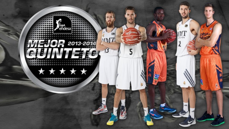 Elegido por votación entre jugadores, entrenadores, prensa y aficionados, el mejor quinteto de esta temporada viene a premiar las magníficas campañas de Real Madrid y Valencia Basket, con tres jugadores del primero y dos del segundo.