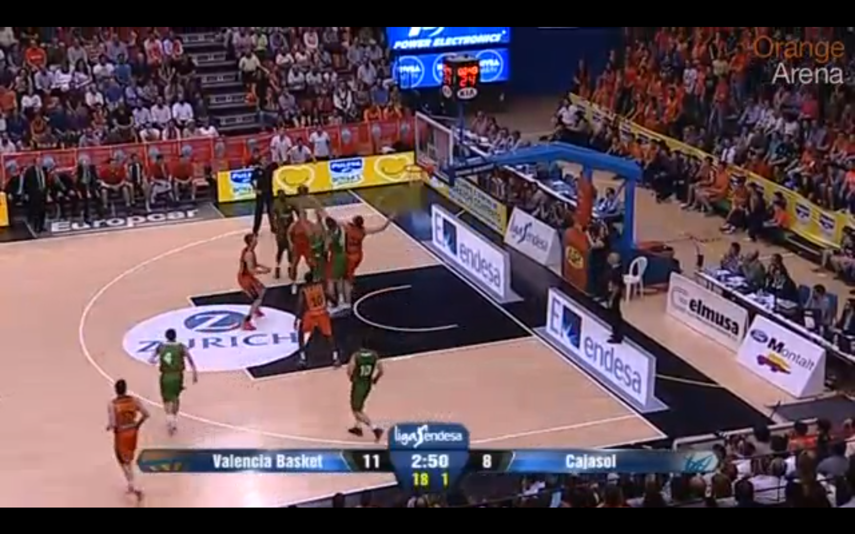 Por eso es de esperar que, en principio, hay muchas posibilidades de que si el pívot atacante recoge el rebote, vaya a estar rodeado de rivales que, en primer lugar, no van a permitirle un tiro cómodo y, en segundo, podrán intentar robarle el balón en el primer momento en que lo baje. Es una situación muy frecuente esa de ver al pívot coger el rebote y perderlo inmediatamente cuando un jugador, no pocas veces más bajo, le mete las manos entre los brazos y se lleva el balón. Además, con mucha gente alrededor y en su camino a canasta, es improbable que pueda anotar. En esa situación lo mejor que puede hacer es sacar el balón fuera lo antes posible. Y quien antes puede hacerlo es precisamente un pívot que saque unos cuantos centímetros a todos, tal como el caso de Tomic. O de cualquier pívot que mida más de 2,13m. Con los defensores cerrados sobre la zona y sus compañeros abiertos, el palmeo hacia fuera será fácil que acabe en manos de uno de éstos, lo suficiente para poder decir que de esa manera tendrá menos probabilidades de perder el balón; además, haciéndolo así los exteriores rivales no tienen tiempo de reaccionar cortando líneas de pase ni acosándole con intentos de robo, ahorrándose posibles problemas para sacar el balón a un compañero. No sólo eso: el jugador exterior que reciba el balón podría hacerlo con espacio que le permita encontrar un tiro fácil o aprovechar el momento inicial en que los defensores buscan a sus pares.