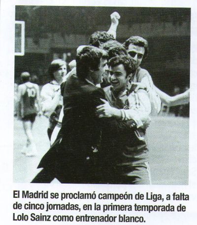 1975, Ferrándiz deja el puesto a Lolo Sáinz, que permanecerá al frente del equipo 14 temporadas hasta 1989. 10 ligas, 4 Copas, 1 Supercopa de España, 2 Copas de Europa, 2 Recopas, 1 Copa Korac, 3 Intercontinentales y 1 Mundial de Clubes. -