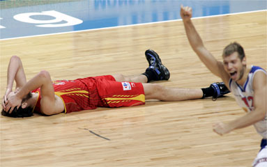 En las eliminatorias, al igual que nos pasó 9 años antes en Atenas, el cuarto de grupo tiene su partido bueno del campeonato, y derrotamos a una potente Serbia de 30 puntos. Parece que el grupo va a volver a resurgir como en otros Eurobasket, pero no tenemos a los líderes, y caemos en semifinales ante Francia, finalmente campeón liderados por Tony Parker, en otro marcador ajustado (-3), para acabar llevándonos el bronce ante Croacia con una victoria holgada de 26 puntos.