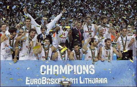 En Lituania 2011, volvemos a tropezar con Turquía en la 1º fase de grupos, aunque nos clasificamos como primeros de grupos y en la 2º fase no perdemos ningún partido, asique llegamos a las eliminatorias como campeones del grupo. En el camino al oro nos encontramos con Eslovenia (+22), la gran sorpresa del torneo, Macedonia (+12) que nos hizo sudar para vencerles, y en la final ante Francia con todo el equipo no perdimos ni un cuarto para volver a ser campeones de Europa.