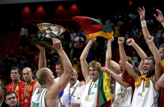 Llega 2003, y aunque hemos perdido por lesión a Raül López, líder de los juniors de oro, Pau Gasol ha recogido su testigo y ya es una estrella en los Memphis Grizzlies y en la NBA. Junto a él siguen la “generación de oro”, cada vez más integrada en la selección, apoyada por veteranos como Alfonso Reyes, Alberto Herreros o la pareja Carlos Jiménez – Jorge Garbajosa, que acompañará a estos durante gran parte de los éxitos de la selección con papel fundamental. Tras una fase de grupos de 3 partidos invictos, en cuartos nos deshacemos fácil de Israel, y en semifinales vencemos con apuros a Italia (campeón en 1999 del Eurobasket). Llegamos exhaustos a la final ante la Lituania de Jasikevicius, MVP del Eurobasket, y caemos de 9 puntos en una final que creíamos que era nuestra gran oportunidad y que siempre veíamos celebrar a otros…