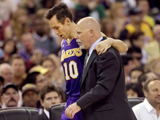 Parece interminable la racha de lesiones en los Lakers desde hace dos temporadas. Se lleva la palma sin duda Steve Nash, que desde que aterrizó en Los Ángeles sólo pudo jugar 50 partidos en su primera temporada y 6 el año pasado, para recaer de sus problemas en la espalda hace una semana y causar baja para toda la temporada. En total, 56 partidos jugados de 246 posibles, si contamos los de la temporada recién iniciada; 190 partidos de baja, o lo que es lo mismo, el 77% de los partidos vistos desde la grada.