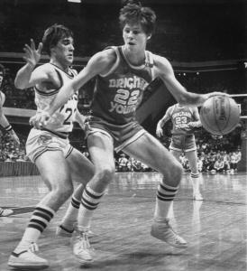 Responsable del mayor éxito de los BYU Cougars (estamos hablando de baloncesto), al protagonizar un canasta sobre la bocina que les hizo entrar en el Elite Eight de 1981, sin embargo Ainge además por esos años jugaba en las ligas mayores de béisbol.