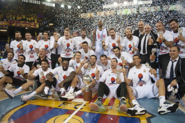 Y sin embargo, así es. El Real Madrid de baloncesto acaba de obtener la triple corona. Esto es: Campeón de Copa del Rey, Campeón de Europa y Campeón de Liga. Tres títulos a los que se añade la Supercopa con la que se abrió esta temporada 14/15 ya para siempre escrita con letras de oro en la historia del club blanco.