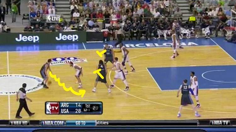 Empezó el siglo en el ciclo defensivo, en el que el foco del juego era negar la zona en la defensa. Acumular cuerpos en ella, negar espacio a pivotes y penetradores. Recordemos cómo, durante los primeros años de Gasol en la selección, el gran problema que impedía imponer su calidad y lograr éxitos era la congestión en la zona que le impedía usar su talento, ya que si en uno contra uno era espectacularmente superior a cualquier rival, se encontraba con un segundo defensor muy cerca que hacía su trabajo casi imposible. En una zona congestionada por defensores el pívot rival no puede botar, no puede regatear, no puede moverse y los pequeños no pueden entrar a penetrar. La selección de Imbroda, incapaz de poner el balón por dentro, limitándose a pases entre los tres exteriores más allá de la línea de tres.