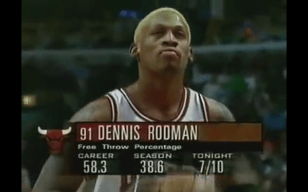 Dennis Rodman, segundo peor lanzador de tiros libres esa temporada con un triste 38% de acierto. Los Mavs juegan en Chicago y Don Nelson decide que la mejor forma de derrotar a los Bulls es llevar a Rodman a la línea de tiros libres. Así que le encarga esta misión a Bubba Wells, que la... Leer más →